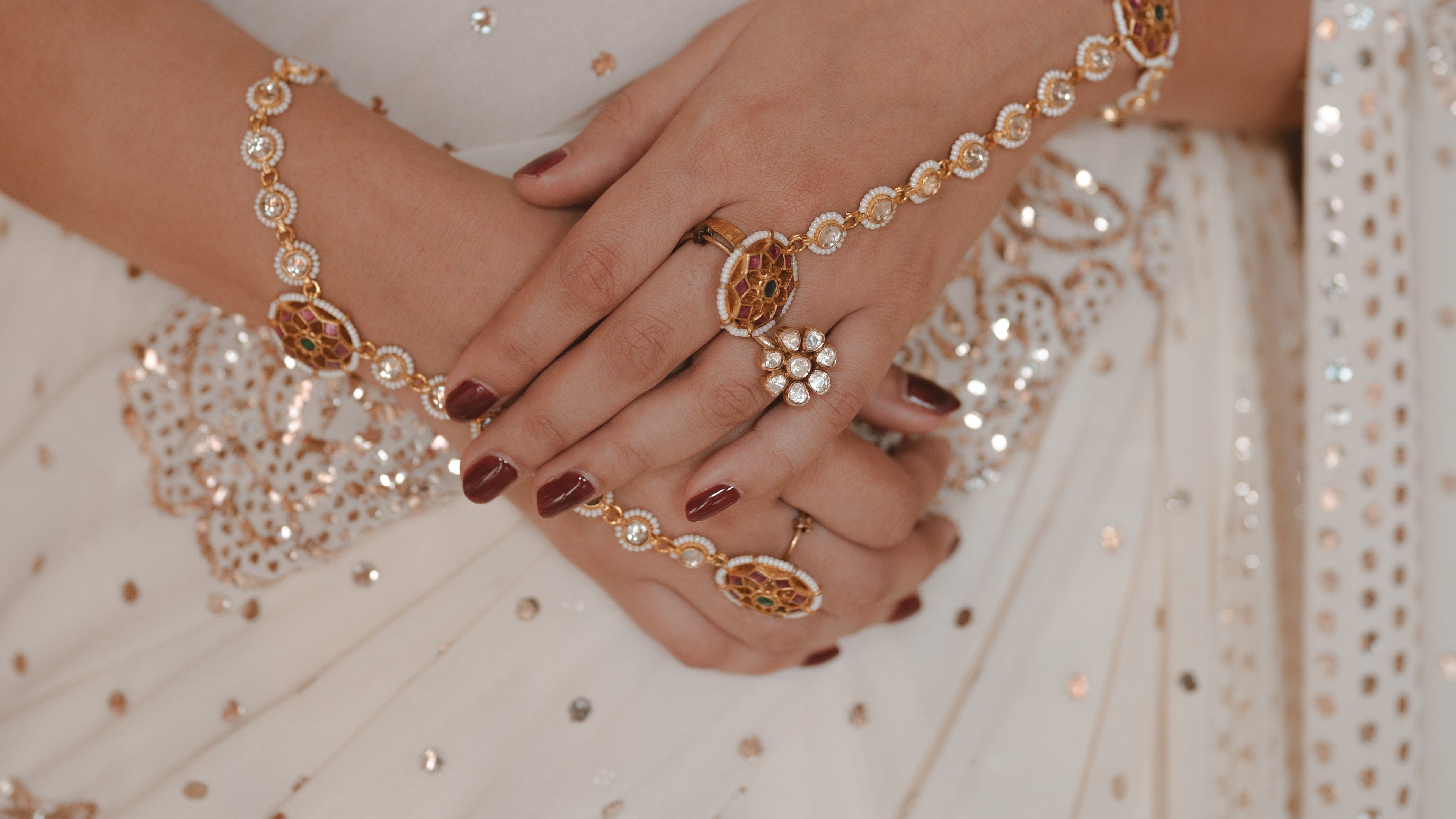 Intricate handwork using fine metal threads for subtle, lasting shimmer.