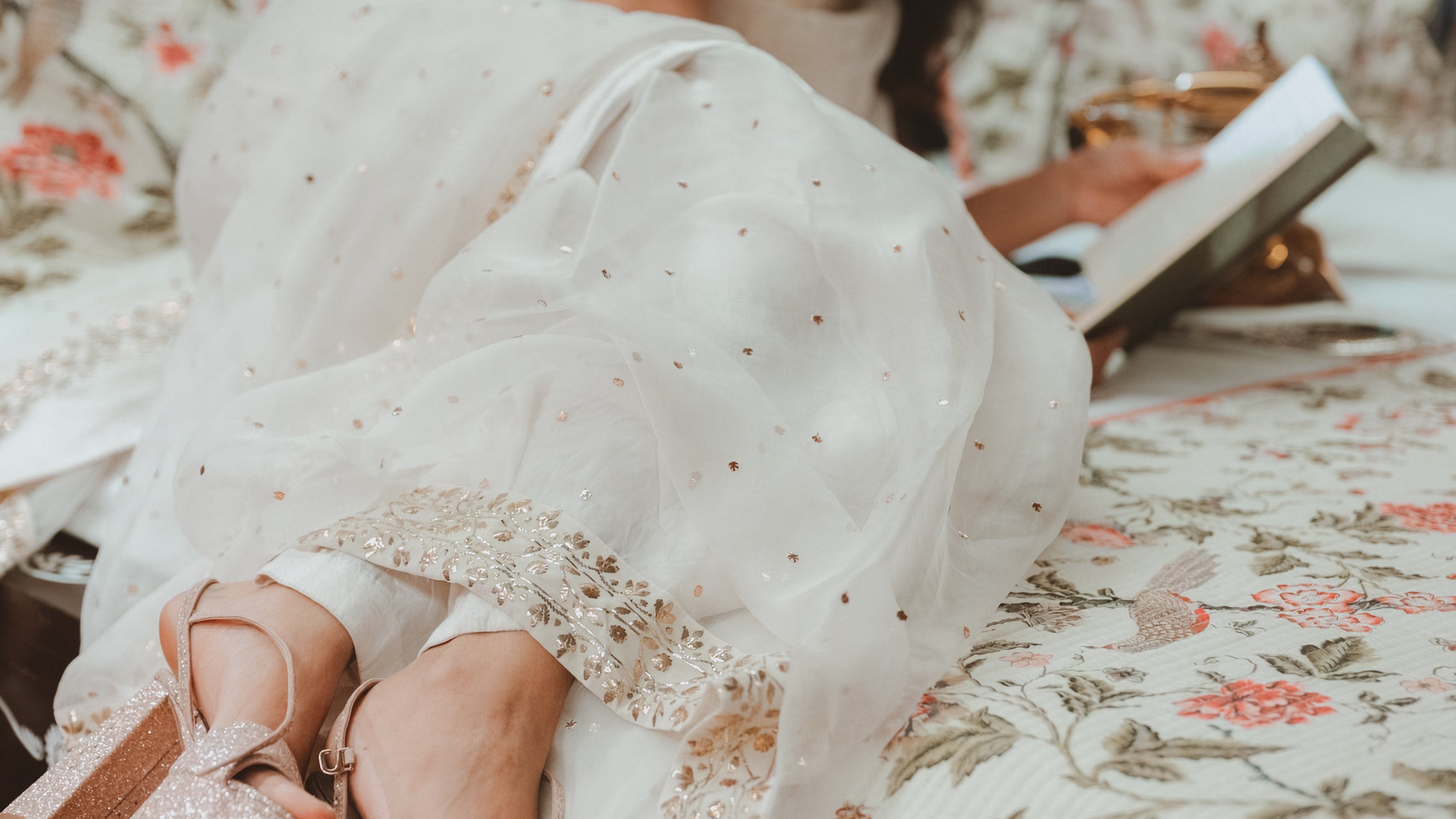 Handcrafted by generational artisans of Lucknow, this saree brings together delicate kaamdaani florals and time-honoured mukaish techniques. Each motif is placed by hand, reflecting hours of patient, invisible labour — a quiet luxury meant to be worn and cherished.
